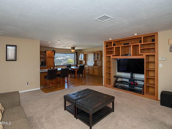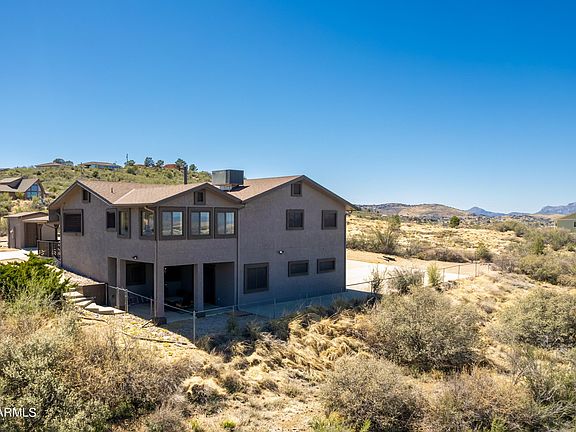 Here is nearly 3400 Sq Ft of Quality construction with Panoramic VIEWS of the Bradshaw Mountains, Bill Williams, Mingus, San Francisco Peaks, & the Stoneridge Golf Course with hard surfaced access so you can keep your toys clean!!! Featuring an Open/Split Floor Plan with 3 Bedrooms, 2.5 Bathrooms, 2 Car Drive under Garage + 32' x 32' Detached 2.5 Car Garage in addition to Formal Dining Room & Huge Rec Room. Home has Excellent Curb Appeal with New Exterior Paint & Newer Roof, & Sun Screens. Upon entering find Beautiful ¾'' Oak Flooring, 2 Tone Paint, Ceiling Fans, Central Vac, Skylights, Carpet in Bedrooms, & Tile flooring in Bathrooms. Kitchen is well appointed with Oak Cabinetry, Corian Countertops, New Stainless Steel Appliances Inc. Fridge, Convection Oven, Dishwasher, Micro, & has Eat In Kitchen Area. Master is Spacious with Dual Sinks, Large Shower, Crown Molding, & Huge Walk-In Closet. Other amenities include New boiler for Energy Efficient Radiant In Floor Heating, Jacuzzi Jetted Tub, Security Screen Door, Laundry off Master w/Washer & Dryer Conveying + Lower Laundry Room, Office w/Powder Room, 6 Person Hot Tub on Lower Patio, & has a strong 1.7 GPM Well with 300 gallon Storage Tank that has never been an issue.