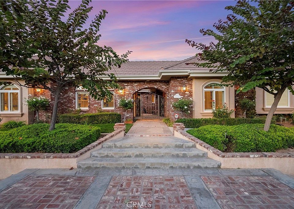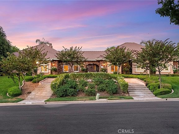 HAWARDEN HILLS- HISTORIC HAWARDEN DRIVE- This elegantly sprawling French Country estate designed by Tom LaCava and custom built for the current owners is offered for the first time in turn-key condition! Entering through the gated front courtyard you are greeted by a refreshing fountain and welcomed through the beautifully milled double glass entry doors to the impressive foyer! Directly off the foyer to the left is the formal living room with cathedral ceiling, wood-burning fireplace and views grounds; Straight ahead is the large but intimate formal dining room with coffered ceiling and again views of the grounds. Continue down the hall to the massive family room with large wet bar, all located adjacent to the island kitchen with built-in appliances and walk-in pantry and separate breakfast nook. Just past the kitchen is the office with built-in book cases and storage and a private half bath. The bedroom quarters of the house are split into three separate wings containing a total of four bedrooms; One wing contains the Guest suite with adjacent sitting room/study currently used as a home gym with direct access to the front courtyard making it an ideal junior ADU if needed; Another wing contains two bedrooms with adjoining Jack and Jill bath and the massive laundry room at the end of the hall; The rear wing houses a pool bath with access to the interior of the home as well as the outside pool area and the incredibly luxurious and secluded owner's suite with sitting area, spa like travertine bath, two walk-in closets and loads of windows with views onto the backyard and pool areas. The backyard is as nice as any 5-star resort with outdoor kitchen, fireplace, covered patios and over-sized pool and spa. Expansive views of the Alessandro Arroyo and Creek and the city lights, hills and mountains beyond! Beautifully landscaped grounds covered in mature trees including a small multi-variety orchard. The over-sized 4-car garage will fit the largest of vehicles and even a ski-boat or other toys and additionally there is ample off-street parking on the driveway. A one of a kind residence in an idyllic setting located in one Riverside's most sought after neighborhoods!