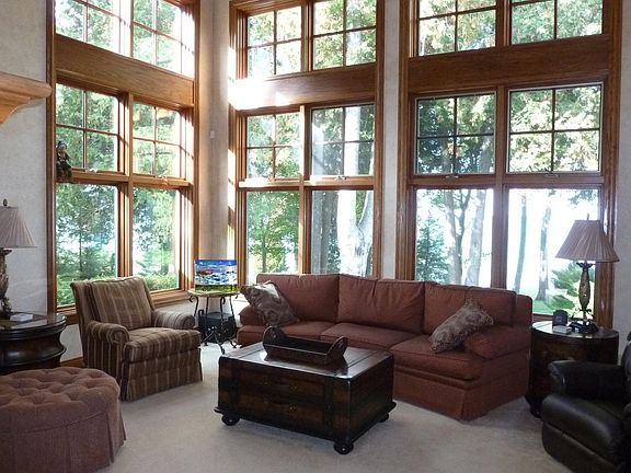 Tranquility Pointe will become your favorite retreat. This stunning, custom built home is meticulously crafted and features 3 bedrooms, 4 bathrooms (upper and lower master suites), a gourmet kitchen complete with custom cherry cabinets, granite countertops and your very own wood fired pizza oven. An attached 2 car heated garage with epoxy floors is nestled on just under 3 acres and 231 feet of Lake Huron frontage. You will be afforded stunning views from every direction. The uniqueness of the property allows you to watch the sunrise and sunset from late June until early August. The home features geo-thermal heating with radiant in-floor heating. Outdoor entertaining was thought of also- with an inviting screened in lakeside porch with a attached composite deck of nearly 500 square feet. There is a detached greenhouse with a fish cleaning station and separate sink for working in the garden. The property's lush landscaping leads to the "tractor house" with plenty of room for your toys along with additional living and entertaining space. The amenities are numerous, the attention to detail and pride of ownership is displayed throughout this home offer a presence that few homes possess.