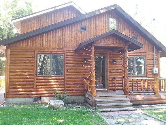 This beautifully maintained log home offers 1.5 story with 3 bedrooms, 2 baths, large living room with cathedral ceiling and stone fireplace. Kitchen was updated with gorgeous granite counter tops, new appliances and hickory cabinets. Meandering driveway carries you through a heavily wooded scenery as you cross over the natural tributary for the pond. Main bathroom has matching hickory cabinets for a consistent design. Personality wraps around this home with log deck posts finishing off the design. This setting truly lets you feel like you are hidden in the wilderness but yet less than a mile from expressway access.