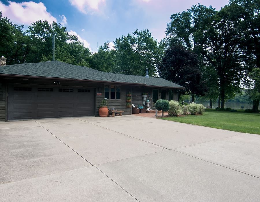 It leaves you breathless! 5+acres on the river. Long, winding driveway. Wooded splendor, meandering creek, yet house and buildings nestled in park-like setting. Gorgeous, postcard views river and professional landscaping. Custom 3200+ sq. ft home distinguished for design and appointment. Captivating great room, peaked ceiling, fireplace, access to 1300+ sq. ft deck, wall windows, Brazilian floor, open 6 sided dining room, chef's kitchen, vaulted, tons of corian, breakfast bar overlooking family room with massive stone fireplace and cork floor. Dream master suite with river views, 4 season wrapped glass to luxuriate, updated bath. Perfect guest room, 3 skylights. 45x52 insulated, heated building for "toys", oversized 2nd garage with built in grill. Boat landing, dock, walking, hiking trails, bridge. Meticulously maintained. Seeing is believing.