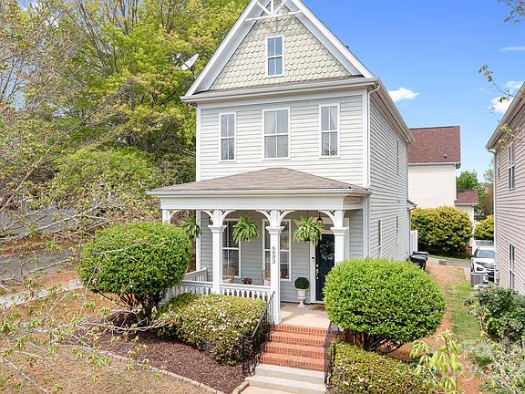Tree lined streets welcome you to this Charming Charleston Style home in lovely Douglas Park! Adorable 2 story home features a welcoming front porch, Beautiful hardwood floors and a gas fireplace in the family room, Large dining area with hardwood floors and lots of natural light opens to an oversized kitchen with a pantry and a new range, sink ('21). Remodeled Powder room('23) Laundry area off kitchen. Upstairs offers a beautiful Primary bedroom with a completely remodeled ensuite bath ('22) and walk in closet. Two additional bedrooms share a large full bathroom. Outdoors you will find a private rear patio area with a PVC Privacy fence, and a pad with 2 parking spaces at the rear of the home. There is also an outdoor storage closet. Located 1 block from Francis Bradley Middle School & Barnette Elementary School. Near Birkdale Village and many great restaurants, grocery stores and shopping.Minutes to Lake Norman, Latta Plantation, Rural Hill, I-77, and Hwy 485. Community Green space.