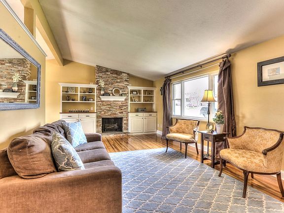 Inviting tri-level! Bright entry into vaulted living room with refinished hardwood floor, wood burning fireplace w/stacked stone surround and new cherry wood top custom built-ins with extra storage space and soft-close cabinet doors. Updated kitchen includes, slab granite countertops, new cabinets, hardware, stainless steel range & microwave, anti-slip tile floor and pantry storage. Brand new hardwood staircase leads to 2 upper bedrooms & 2 lower bedrooms, all with closet organization systems and each with updated shared baths. Finished basement w/open family room, storage area & laundry room with shelving & folding counter. Some newer 6 panel doors, baseboards, paint & tile floor. Home equipped with whole house humidifier and high efficiency air cleaner. Spacious full cedar fenced backyard includes patio, berry bushes, cedar garden boxes, built-in grill, compost system & access to 1 car attached garage. Garage includes loft storage & shelving.