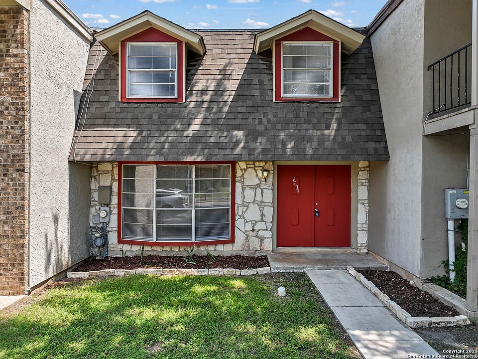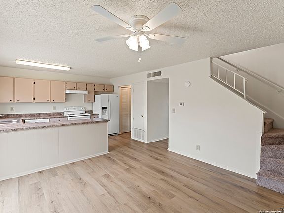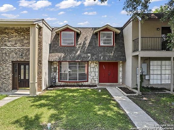 Close to UTSA, Medical Center, IH-10/1604 shopping, good schools: check school for any changes. New A/C in 4-9-21, Water heater in Aug. 2017. Full bath in both bedrooms, 1/2 bath downstairs with laundry room, fenced back yard with cement patio and storage unit, 2 car parking pads in alley. New dishwasher, refrigerator, electric stove & vent hood 6/23. Kitchen counter tops new in 2020. Smoke and carbon monoxide alarms. All new ceiling fans, mini blinds and verticals 6/23. New interior paint, 6/23 & carpet upstairs with new vinyl wood look downstairs, 6/23. Extra flooring and paint supplies in storage. Water leak in master shower, 4/23 and insurance covered all repairs. Water heater, Aug.2017 and newer A/C unit in 2021. Master bedroom has large Walkin closet and Power/ dressing area. Elem. school 2 blocks away.