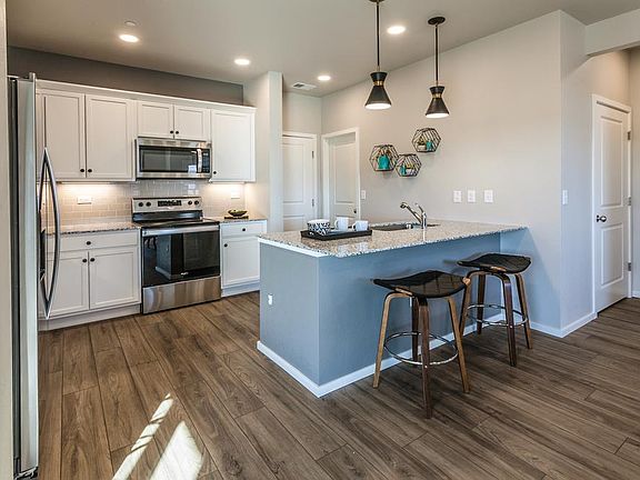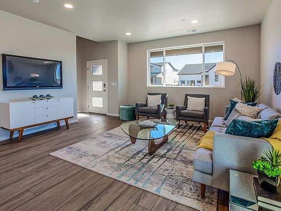The Durango floor plan is an end unit townhome featuring an open concept main-floor with eat-in kitchen island, walk-in pantry, half bath, and side patio. The second floor consists of 3 bedrooms with walk-in closets and two full bathrooms as well as a dedicated laundry room.