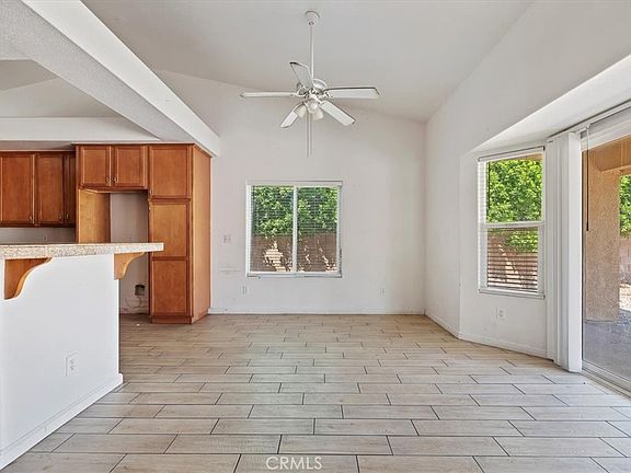 This inviting 1,837 sq. ft. home, built in 2005, offers comfortable living with beautiful desert mountain views. The open floor plan features attractive plank-look tile flooring in the main living areas and warm wood-look laminate in the bedrooms, providing easy, low-maintenance style throughout. High volume ceilings add a spacious feel, while a cozy fireplace creates a welcoming focal point.