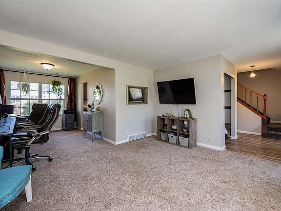 Beautifully updated home featuring new siding, roof, garage door, stone patio, paint & much more. Lovely family room with cozy brick fireplace & built-ins has sliding glass doors to new stone patio and firepit area. Fantastic eat in kitchen with newer stainless appliances including French door fridge, tile backsplash & perfect coffee bar area. Formal dining room, living room, charming 1/2 bath w wainscoting, & 2 car garage complete main level. Second floor with new LVP in hallway, spacious sunny primary suite with en suite bathroom with new modern flooring, mirror, toilet & shower door. Bedrooms 2&3 also are sun-filled and spacious, generous closet size & share the updated hall bathroom with tile backsplash, new toilet, updated vanity &0 tile floor. Lower level rec room opens to a spacious office, laundry area and half bath, tons of storage space. Nice big yard, great neighborhood close to parks.
