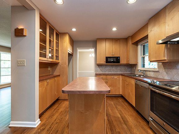 Spacious 3 bedroom + office home on a double lot in marvelous Medfield! Wooded oasis with large lots offering easy access to downtown Raleigh or Cary. You'll love the updated kitchen with custom maple cabinets, smooth ceiling, recessed lighting, updated stainless steel appliances, and terrific storage options. Gorgeous real hardwood floors in most of the house! Wonderful large bay window in the living room with display space for plants or collectibles. All new interior paint. Updated primary bathroom with ceramic tile shower and floor, frameless enclosure, granite counter, plus upgraded head & hand-shower. Don't miss the hidden closet space off this bathroom! Family room with built-in bookshelves and wood-burning fireplace. Over-size two car garage with cabinet storage and workbench. Huge multi-level deck overlooking serene back yard that is a bird-watcher's paradise. Wrought-iron patio furniture stays. Fenced yard. Flat driveway. No HOA; No city taxes. Tankless water heater 2020. Easy walk to the Medfield Swim Club (membership optional.)