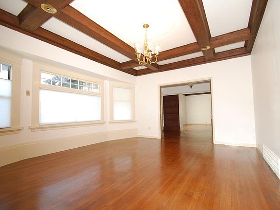 This Craftsman has many modern amenities yet maintains its original charm. From the exterior this home features a long driveway that fits 2 or 3 cars parked tandem. Once inside you will find tall box beamed ceilings, ornate fixtures, hardwood flooring, claw foot tub with shower over, and a flexible floorplan. Some of the modern amenities include: - Newer forced air furnace - Washer and dryer - Gas cooktop - Bosch Oven - Dishwasher - Top down and bottom up window blinds Flexible floorplan This home has a large entry that flows into either a large living room or dining room. There are two bedrooms one that has an attached office or nursery space and one that has a walk-through closet to the bathroom. There are one and a half baths with the half bathroom attached to the kitchen. If your household needed it either the dining room or living room could become or could double as a third bedroom and the owners would be amenable to this. Geographically Less than a mile to Ashby Bart: You are also close to Rockridge BART with direct service to San Francisco. AC Transit has a bus stop at Telegraph Ave or there is the 51 College bus both go straight to Cal Berkeley campus. Several parks are nearby with Bateman Mall Park only four blocks away: In the immediate vicinity there are a number of shopping and cafe choices including: the shops at Alcatraz & College, Safeway, Trader Joes, specialty shops across the street from the Safeway (bakery, fresh produce, butcher & wine shop) plus Pete's, Cole's, Philz coffee shops, with a small Starbucks in Safeway. Whole Foods also about 10 minute walk (Ashby & Telegraph). Basic trash, recycling, and green waste service is included in the rent
