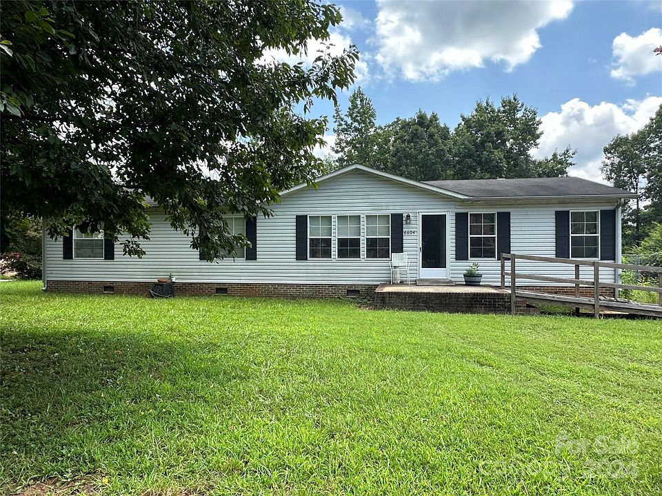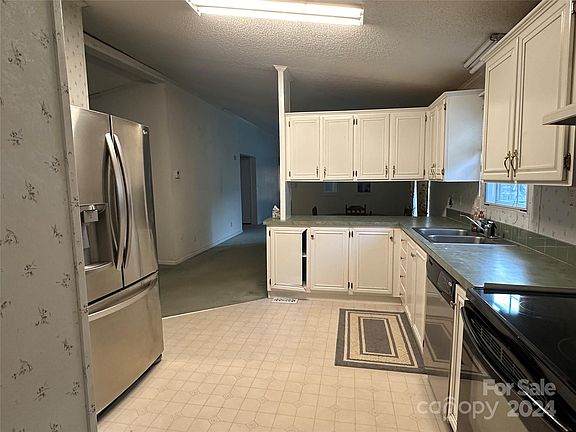 3 bedroom / 2 bathroom home in Maiden on a .61 acre corner lot. The home features a split bedroom floor plan, two living areas, and a spacious kitchen. The primary suite has a walk-in closet, a full bath with soaking tub, walk-in shower, and dual vanities. The secondary bedrooms share a full bathroom and open into their own den area with fireplace. The rear deck leads out to a fenced yard with multiple outbuildings.