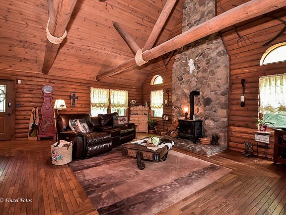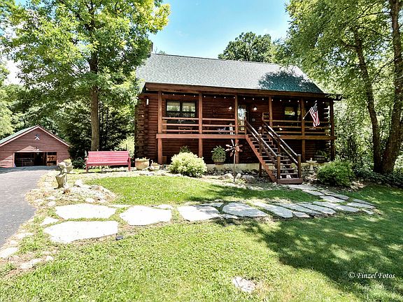 Old growth Hickory, Oak, Birch, Sugar Maples and Black Walnut sway while birdsongs welcome you to this gorgeous custom log home on 2.3 Acres surrounded by nature preserve. A real front porch awaits your chair and ottoman. Impressive great room with soaring beamed ceilings, featuring a floor to peak stone fireplace. Hardwood Floors. Open Concept. Chef kitchen with oversize workstation island. Separate dining room with bay windows overlooking peaceful and tranquil landscaped areas. Two bedrooms and full bath on main floor. The upper level is the Owners Retreat with Spa Bath and Loft. Basement has Snack Bar, Stone Fireplace, Bedroom, 1/2 Bath, Laundry Room With Outside Access and Large Storage Area. 2.5 Car Log Garage. Beautifully Landscaped, Front and Back Porches. Roofs replaced in 2018, Furnace replaced in 2016. This home is amazing inside and out! Due to covid, owners animals have been brought home and the 30x30 detached garage has been temporarily converted into stable. Corral fencing is not permanent and can be removed if not wanted. Horses are allowed on this parcel. Taxes are an estimate based on current assessed value and tax rate. Current homeowner is 100% exempt.
