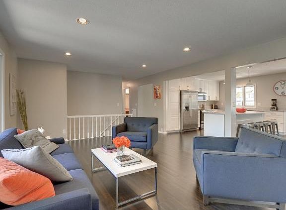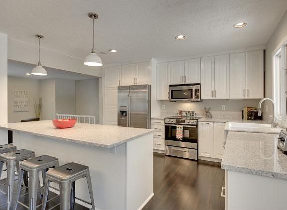 Updated Rambler with modern open floor plan, beautiful new kitchen with quartz counters and stainless steel appliances, dark bamboo floors, new organic carpet in bedrooms, finished basement with a 4 th bedroom possibility. Right next to a great park!
