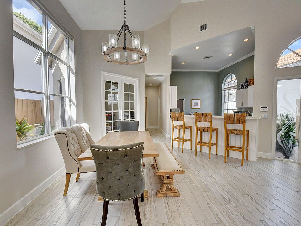 Located in the prestigious Broken Sound Country Club, this renovated Banyans home will impress you with its contemporary design and abundance of natural sunlight. A split bedroom floor plan with vaulted ceilings, smooth walls, recessed lights & porcelain tile floors make this home warm & inviting. You'll love the openness of the sensational kitchen with white quartz counters, stainless appliances & new backsplash and crown molding. The primary suite features vaulted ceilings & large walk in closet and the primary bath has quartz counters, frameless shower, soaking tub with jets and 2 skylights.The outdoor space is perfect for relaxing & entertaining under your covered patio or cool off from the Florida heat in your private pool. New Roof. Mandatory Broken Sound Country Club Membership