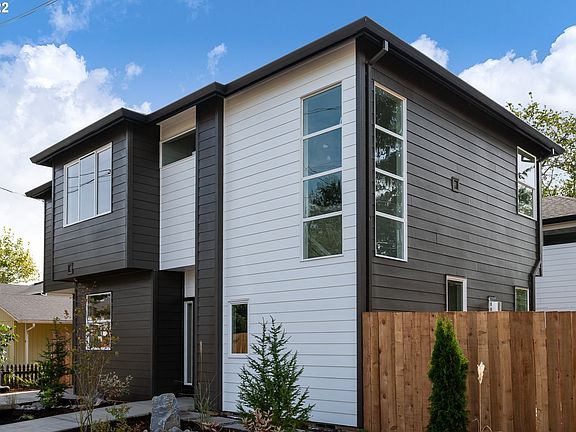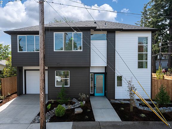 Beautiful new construction home in Mt. Scott-Arleta. This is a modern style home with designer finishes including manufactured hardwood floors on the main level, custom cabinets, quartz countertops, gas fireplace, stainless steel appliances. Main bathroom boasts a soaking tub and standup shower with fixed panel glass shower door. There are 3 bedrooms plus a large 4th room upstairs that could be used as an office or 4th bedroom. Electric heat pump gives this house both heating and cooling. [Home Energy Score = 9. HES Report at https://rpt.greenbuildingregistry.com/hes/OR10205741]