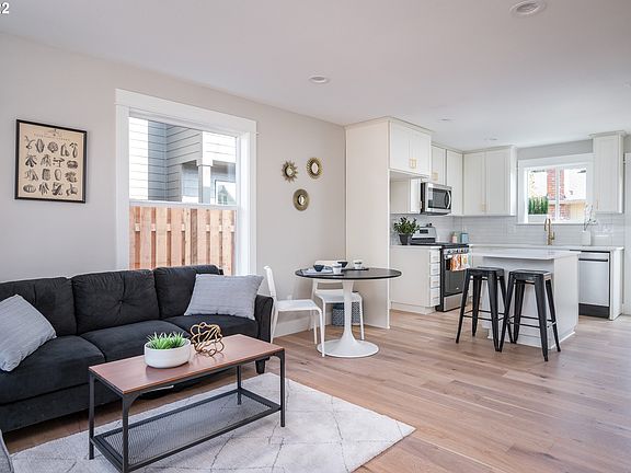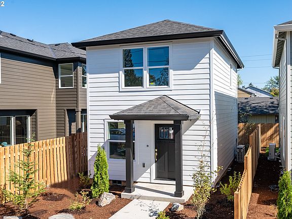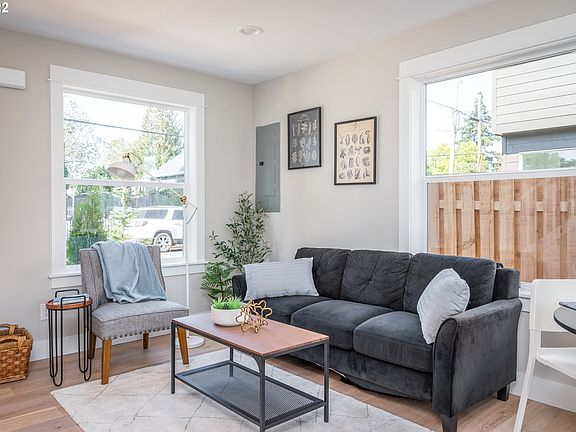 Beautiful new construction home in Mt. Scott-Arleta. This is a modern style home with designer finishes including manufactured hardwood floors on the main level, custom cabinets, quartz countertops, stainless steel appliances. There are 2 bedrooms with vaulted ceilings. Electric heat pump gives this house both heating and cooling. Private yard and patio. Affordable New Construction in Sought After Neighborhood.