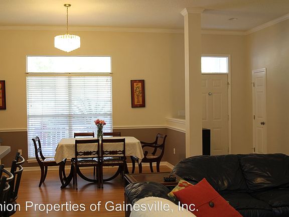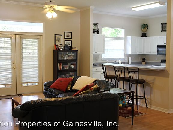 3 Bedroom, 2 Bath with Fenced Yard in Mentone! - Fall in love with as soon as you walk in the door! This stylish 3 bedroom, 2 bath home has plenty of upgrades including crown molding, newer wood laminate flooring throughout, remodeled bathrooms, updated siding on the exterior. The split bedroom plan features two bedrooms and one remodeled bathroom on one side of the house and the master suite with remodeled bathroom on the opposite side. Both bathrooms have new wood cabinets, granite counters and tile floors. The master bath features a double vanity, walk in shower and whirlpool tub. The extra large kitchen has plenty of cabinet storage, counters and a pantry and overlooks the living room and fireplace. French doors lead to a screened lanai, which opens to an open patio and fenced back yard. Indoor laundry room. Lawn service included. Mentone features a community pool, a kiddie pool, a pavilion, a playground, a tennis court, a basketball court, a sand volleyball court, a soccer field and a nature trail. Leases on this property end in May of each year. Pets okay with fee: $250, dog; $150, cat. Maximum 2 pets. No aggressive breeds. Contact Niya Dix at Union Properties to schedule a tour! Niya@rentgainesville.com (352) 373-7578 (RLNE3493937)