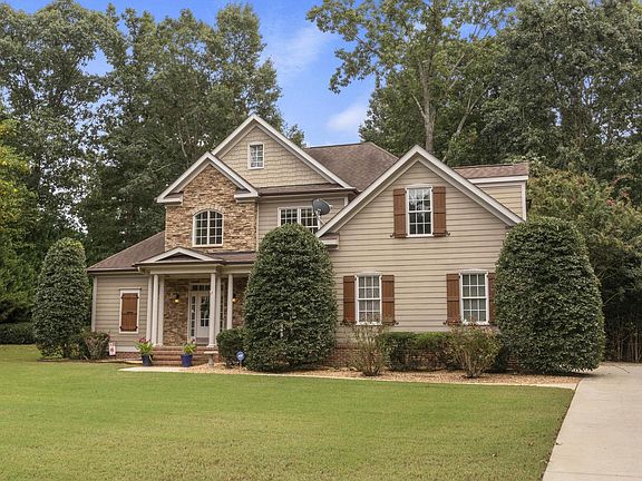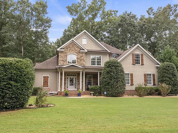 Stunning custom-built home on ¾-ac sprawling manicured homesite. Rocking chair front porch, serene tree lined yard, expansive composite deck, enjoy private homesite, side entry garage, backyard oasis, fenced saltwater heated pool, hot tub, stone fireplace. Stately well-maintained home, quality construction, soaring ceilings, high-end details. Explore the inviting foyer, gorgeous hardwood floors, natural sunlight, neutral colors. The 1st flr enjoys formal dining w/extensive trim, 2-story family w/gas fireplace & window wall. Eat-in kitchen features SS app, granite, ample cabinetry, breakfast bar & breakfast nook. Awaken to tranquility in 1st flr owners retreat w/tray ceilings, en suite BA, jetted tub, dual sinks, tiled shower, WIC. 2nd BR & full BA guest space & oversized laundry rm complete 1st flr. Retreat upstairs: office + 2 add’l BR, w/ WICs, jack-n-jill BA &oversize bonus room. Year-round entertaining is a cinch in the outdoor oasis, embracing an indoor-outdoor lifestyle. Easy to maintain pool & irrigated yard & storage building. Charming quiet private neighborhood, established landscaping & cul de sac street.