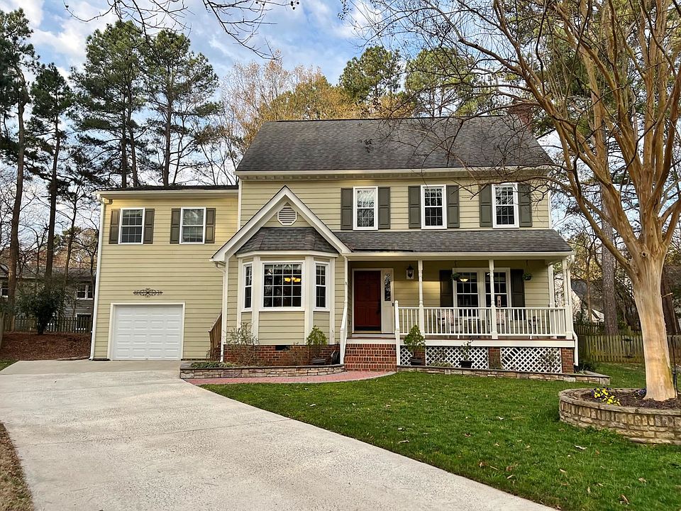 Welcome to this lovely home on cul de sac lot. Relax on the rocking chair front porch. Hardwood floors on the first level. The light and bright kitchen features quartz countertops and tile backsplash. The living room has a cozy fireplace. Escape to the third floor bonus room for game night. You will love the quiet retreat of the screened porch and patio overlooking the backyard. Oversized garage. Walkable to Raleigh Greenway and Millbrook Park. Close to shopping and restaurants. The 3rd floor was professionally finished by previous owners and permits were not able to be located, the square footage of 249 is included in the total living area. Must see!