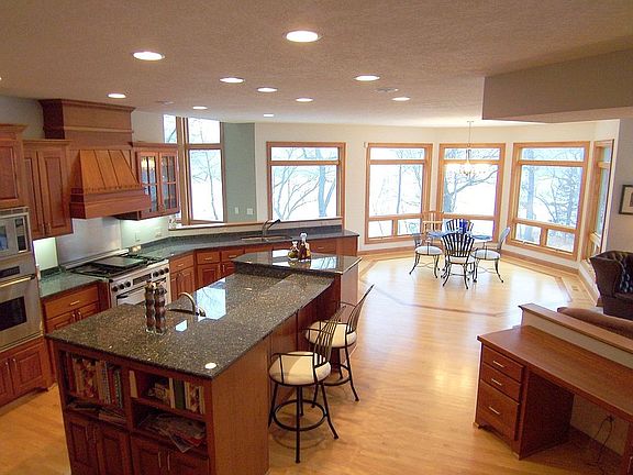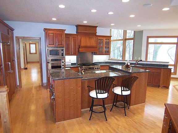 5 bedrooms plus den. Fabulous Saunders Lake! Soaring great room style floor plan w/attn to detail & quality finishes. Lakeside walls of windows offer gorgeous views. Center island kitchen w/gourmet appliances. 2 laundry rooms. Gorgeous walkout lower level with tree covered path to your own private dock on the lake.