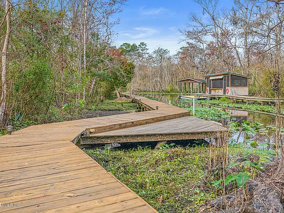 Wow, wow, wow!! Navigable waterfront in quiet, protected cove with easy access to St Johns River, amazing dock has covered boat lift plus beautiful, custom home on approx 2.5 acres & several outbuildings for workshop, storage, etc. & no HOA!! Unique property has new gorgeous Brazilian Cherry hardwood floors & travertine in wet areas. Enter to 2 story wall of windows with sweeping water views to Trout Creek. Huge gourmet kitchen & 16x32 cov'd & screened lanai for Creek Life entertaining! So many recent updates & improvements (see documents) incl updated baths, HVACs, WHs, tinted rear windows, fixtures, lighting, some interior & exterior paint. All appl convey incl 2 refrig, freezer, water softener, generator. You will love this ''Old Florida'' setting & all the modern conveniences!