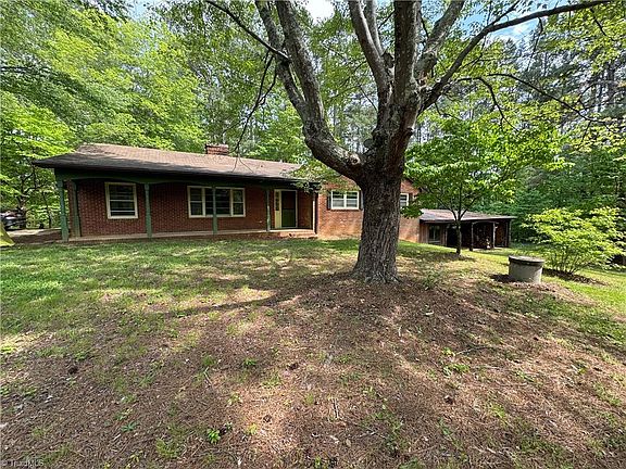 Wanting privacy? Great brick ranch nestled on 1.93 private acres in wonderful Pfafftown location! Huge Living and Dining room, Kitchen w/eat in bar, Den with fireplace with wood insert, built in shelves. 3 Large Bedrooms, 2 full baths, Huge playroom in basement. Large unfinshed area in basement with central vac ,1 car garage, workshop area, tons storage. Covered front porch overlooking goregous, private yard and natural land that surrounds this home! Primary Bedroom has 2 closets, primary bath has walk in shower. There is a 3-6 car carport/open shop(wood working shop)with metal roof. Perfect for hobbiest or all your toys! This is a must see! Call today for more info!
