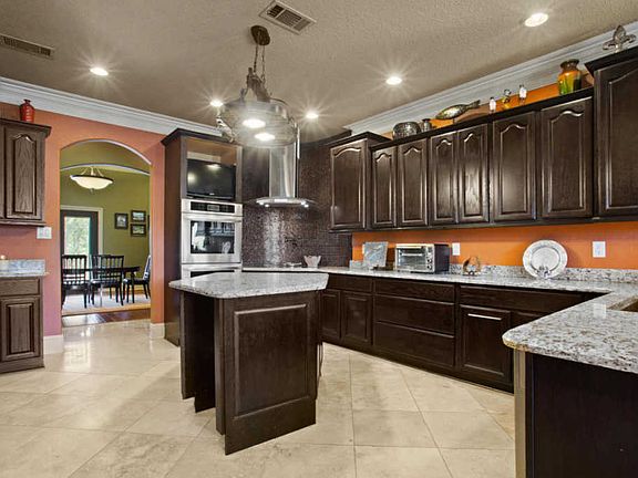 Nestled next to the bayou, this elaborate, custom-built beauty is one of a kind. From your first step inside, soaring ceilings and unique touches welcome you home. The bright sunken living area featuring expansive windows provides plenty of space for all and offers access to an open balcony for enjoying the sunshine. Stainless appliances, granite counters, and gorgeous dark cabinetry will make anyone feel like a pampered professional chef. The breakfast nook and the separate formal dining area with its memorable domed ceiling allow lots of room for entertaining guests. Retreat to the master suite with its jetted tub and spacious walk-in shower to relax after a long day. And don't forget about the luxurious backyard oasis! The gunite pool and jacuzzi provide a sactuary for hot summer days