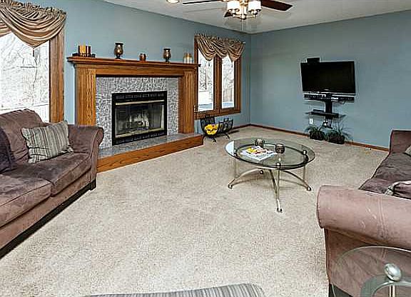 Striking 4BR home on beautiful mature cul-de-sac lot. Gracious 2 story floorplan features a formal living room and dining room on the main floor, plus updated powder room. Gorgeous kitchen features a massive granite island/breakfast bar, ample cabinets, and a slate backsplash, plus updated appliances. Large main floor family room with woodburning fireplace. 2nd floor includes a master suite with walk in closet and full bath, 3 additional bedrooms, plus a fun fully-revamped hall bath with vessel sinks and tile accents. 2nd floor laundry room with utility sink. Finished lower level includes a wonderful huge rec room theatre space, an office/workroom with built ins, plus great storage and workshop area. 2 car attached garage. Large deck overlooks the fenced back yard. Updated high-quality windows, siding, and roof.