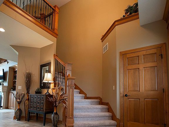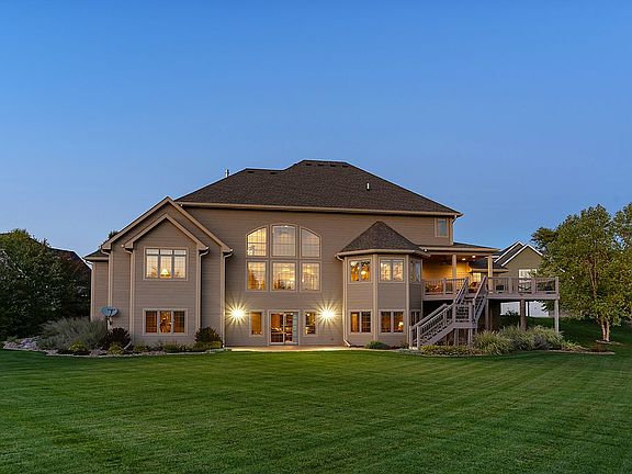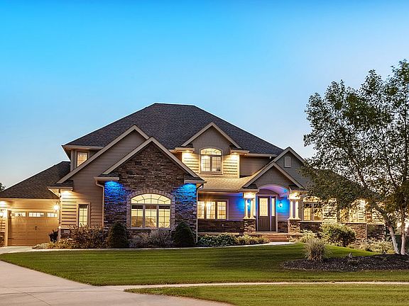 Super Spacious 1.5 Story Walkout on cul-de-sac in prestigious Augustine. 6549sf, Only $160 per sf, open plan, inviting family rm w floor-to-ceiling windows & gas fireplace. Gourmet kit w tile flr, walk-in hidden pantry, double wall ovens, huge brkfst bar, plus center islnd & spacious casual dining area leads to c'vd maint-free & open deck. You'll appreciate the lrg opn FDR for gatherings! O'szd MBR suite w lrge walk-in closet, MBath w dual sinks, jacuzzi, & tile shower. Work from home in the office, & conv lndry rm w sink, another desk/dropzone area, & mudrm completes the main level. Upstairs, three addtl lrg bedrms, each w own private baths & walk-in closets & loft area. Fnshd walkout lower level includes 2nd fam rm, game area, gorgeous wet bar, huge exercise rm, theater rm, 5th BR, bath, & ample storage. Walkout to stamped patio & lndscpd bckryd on one acre. 3 c gar, 2 geothermal units, apex insulation, cen vac, new roof in '19, average MidAmerican $264 with geothermal.