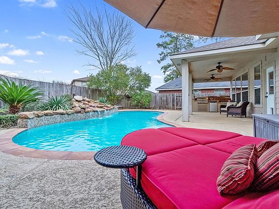 Hard to Find 2 Story with Outdoor Kitchen and Pool with Rock Waterfall, Oversized Garage, Game Room and Separate Media Room Up, Large Rear Covered Patio Private Back Yard and great location on quiet street with low traffic. Enjoy the Master Planned Golf Course Community located centrally with easy access to schools, shopping, dining and toll road. Open Floor Plan with High Ceilings, Spacious Bedrooms and Closets, Large Kitchen Island, Beautiful Iron Spindles on Stair Railing, Master Suite with Wood Flooring and Separate Jet Tub and Shower, Large Closet with Built In Shelving. You will love the Extended Garage with room for a workshop. Comes with Generator Outlet to power entire home.(10k watt portable gas generator is negotiable) Formal Dining Room has fresh neutral paint and could be used as a study or flex space. 1/2 Bath down has a large extra closet under stairs. Gas Cooking with Stainless Appliances. Utility room w room for a Fridge/Freezer. Come enjoy a New Home for a New Year!