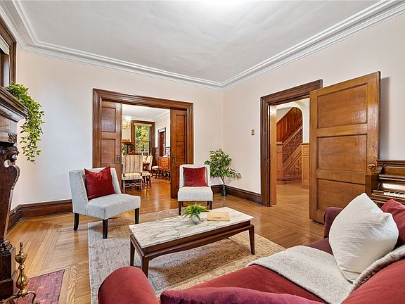 The perfect porch is ready for summertime living! If you want to have a BBQ, head out to the rear deck-there is room for everyone. inside, you will find Original woodwork, exquisit leaded/beveled/stained glass windows, built ins/pocket doors add to the charm & warmth that make this house feel like home. Eat in kitchen functions for more than 1 cook at a time! Formal Dining Room has large windows & curved window seat. 2nd floor hosts 4 beds & laundry. Primary bedroom has a walk in closet & updated en suite bath with double sinks, walk in shower & heated flrs. 3rd flr has 3 additional beds, full bath & bonus kitchen. Best Sq. Hill location, stones throw to Sq. Hill, Shadyside, Bakery Square. extra amenities: underground electrical outlet to charge car, gas grill w permanent gas line, all windows replaced (except stained/leaded/beveled), freshly painted throughout, hard wired alarm system, central air & air filtration system. https://view.ricoh360.com/72c81ef8-587a-4169-b1bc-65aaeeb1cc76