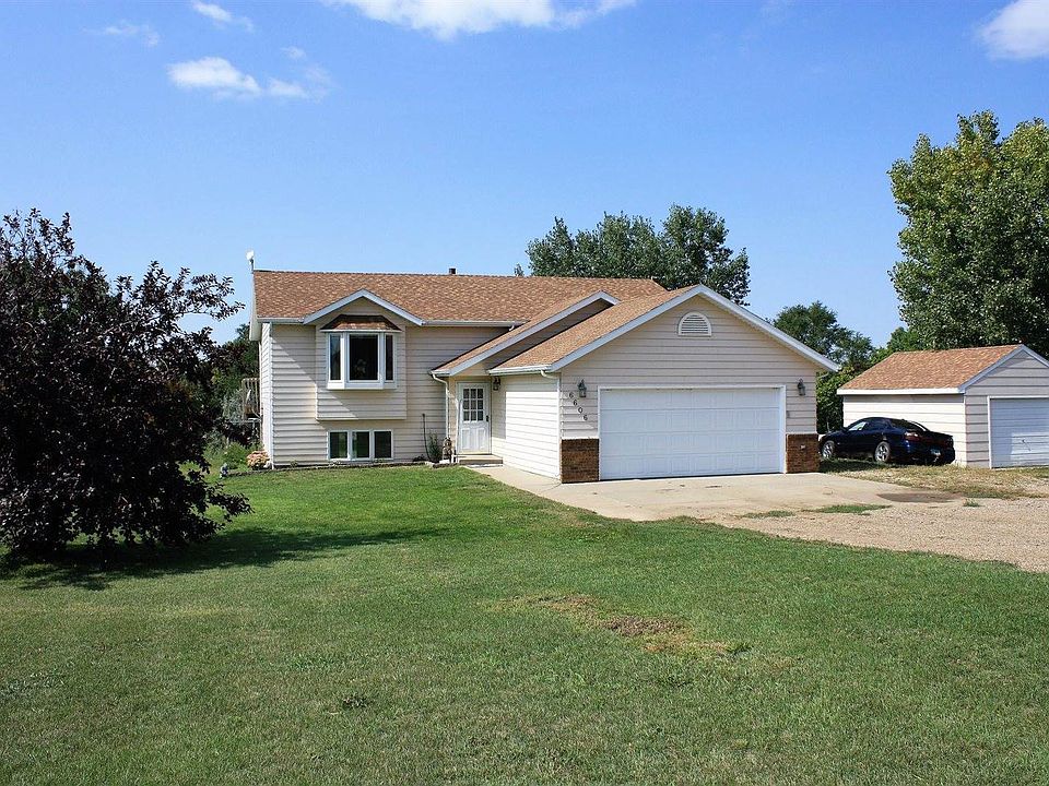 If you want a home minutes from town, this maybe your new Home. This Split-Level home sits on 2 acres with an above ground pool, 3 apple and 2 apricot trees and it's so peaceful. The main floor features the kitchen with ample cabinets, a pantry, open to the Dining room with a sliding glass door (Pella) that leads to a large deck and beautiful, partially fenced, back yard. Also, on the main floor is master bedroom with walk in closet, a second bedroom, and a full bath. The lower level is partially finished with 2 more bedrooms, and a three quarters bath, a large laundry room with lots of extra cabinets for storage. The family room in the lower level is very spacious and has glass walk out to the yard. The family room is framed out and ready for your finishing touches. Outside is a double attached garage that is insulated & heated. There is also a single detached garage and a shed. The shingles were replaced in 2017 and many of the windows have also been replaced. Country living at its best. Call your favorite Realtor today.
