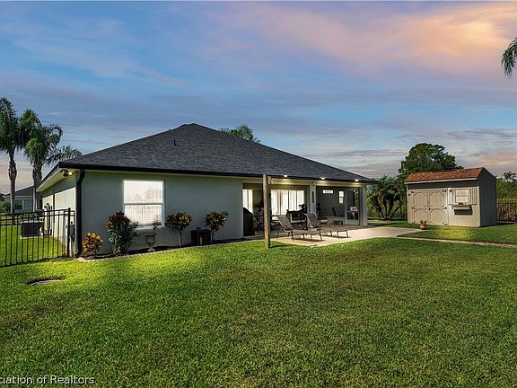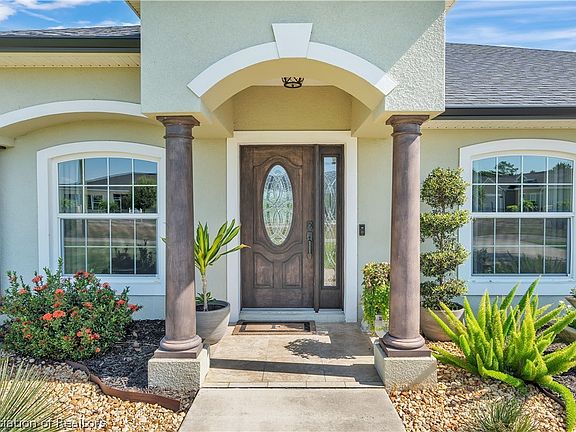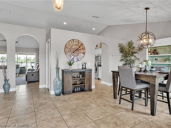 Built in 2015, this home seamlessly blends modern luxury with natural beauty. Step into the living room and dining area, featuring cutout arches that frame pristine water views. The open-concept kitchen and family room boast newer appliances, white cabinetry, granite countertops, and dual pantries. A wall of sliders opens to the spacious lanai, perfect for enjoying the serene water scenery and stunning sunsets.