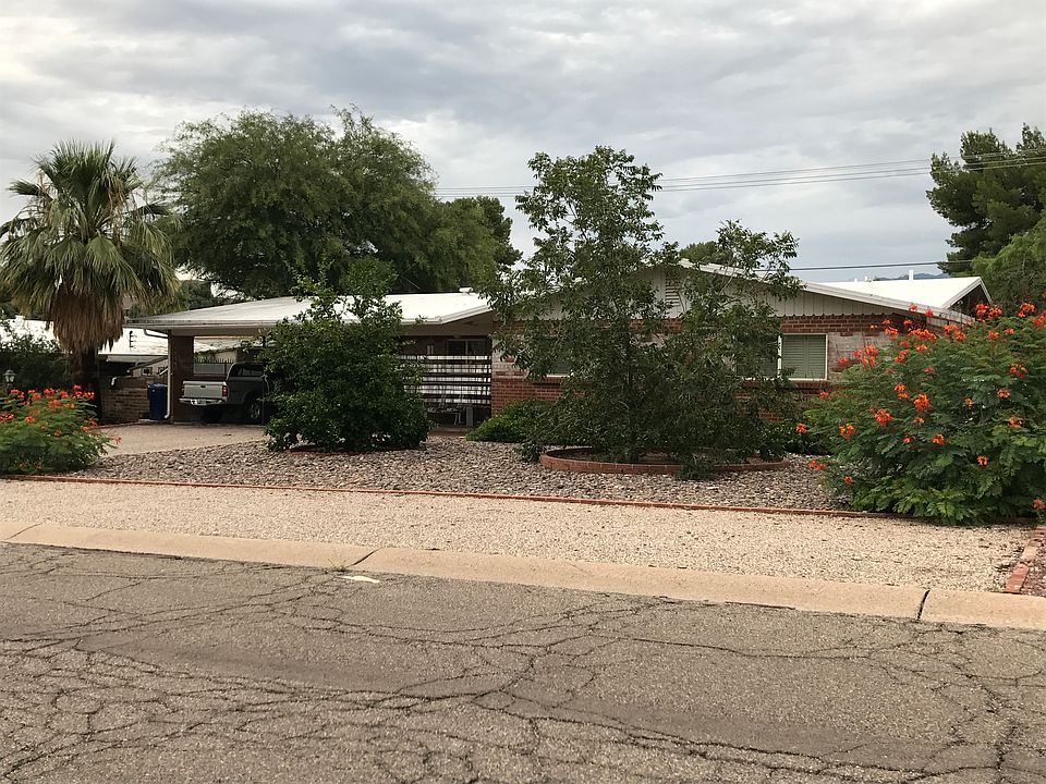 Fantastic 3 large bedroom double brick home with a separate guest house in the back over 380 sq feet built in 2014. All backyard structures permitted. Owners are lovingly remodeling and updating the home to tastefully reflect the Mid Century. Double pane windows, stained concrete and laminate flooring, Geneva metal kitchen cabinets, push button double oven and drain board sink. Laundry room and office/craft room adjacent to family room. Bathrooms have wall sinks with the master having the original crane sinks Lawson medicine cabinets. Most of the house has been painted inside, new AC, new relined sewar from house to center of the street, new ceiling fans and updated electric outlets. The front and back yard boast updated landscape with kumquat, grapefruit, lemon, orange and pecan trees. The grass yard and shrubs are on timer. Added privacy fence to existing block wall. The guest house has a tankless water heater and ductless dual AC and heater and stained concrete floors. It also has a full size bathroom with an original claw foot tub. There are 3 sheds with one being 150 sq feet with an air conditioner. large covered ramada with outside fan and motion sensor lights. The owners are still updating and remodeling the home. The neighborhood is well established with pride of ownership; on good corridor off Broadway and Wilmot. Rear yard faces North for cool afternoons.