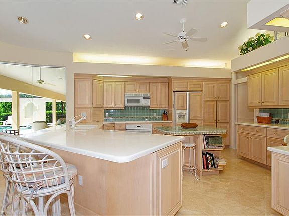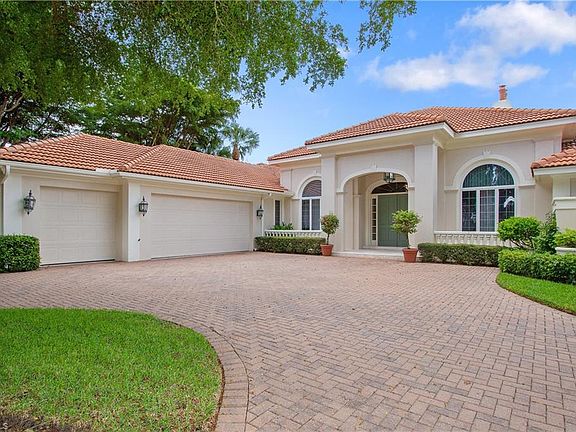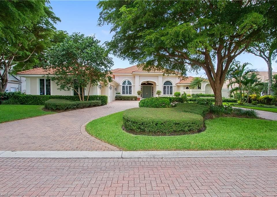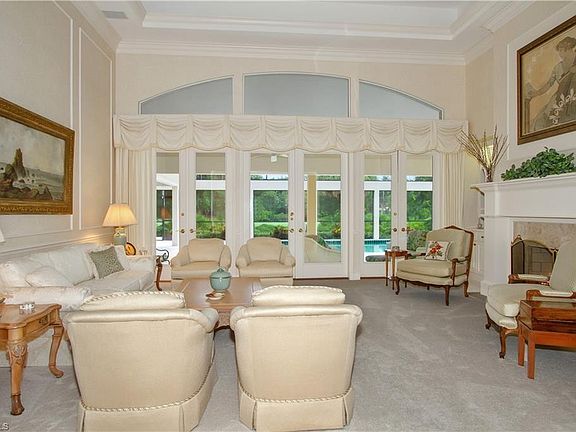 Stunning Golf course Views to be enjoyed from the oversized screened lanai with large pool and spa plus a full pool bath and air conditioned storage rm for pool toys, cushions etc... Exterior features a circular drive with attached three car garage. Interior features include soaring 14 ft and 10 ft ceilings, marble flooring, large open kitchen and family room. Master suite is spacious and guest bedrooms are ensuite, gracious living room with fire place and formal dining room. Lovely wood trim finishes throughout. Home was a custom built home by Premier builder Frey and Sons and has been immaculately maintained. Located within gated Georgetown at Pelican Bay. Centrally located between Upscale Waterside Shops, Restaurants and The Ritz Carlton Beach Resort. Pelican Bay amenities include three miles of Beachfront with two pavilions with Restaurants, tennis, canoeing, kayaking, miles of walking paths and a fitness facility and spa for residents use only. This is a very special home.
