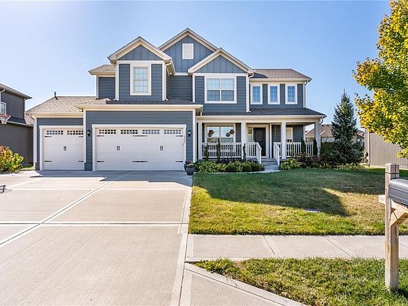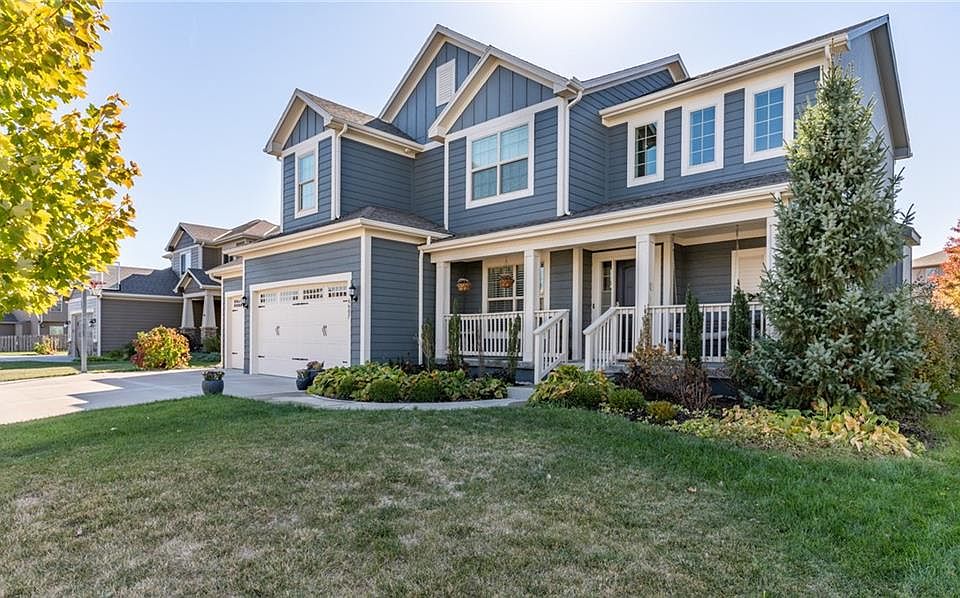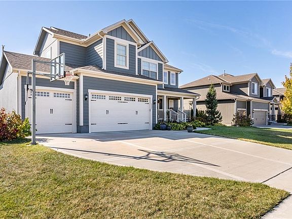 Award winning 2 story floor plan with over 3500 square feet of living space! Main level has hardwood floors, large hearth room with fireplace. 4 large bedrooms upstairs with walk-in closets. Finished lower level with family room, bedroom and full bath. Main level also has a bedroom that would make a great office space! 5 total baths! Backyard oasis with new hardscape! Gorilla basketball goal stays!! Great location, close distance to Tiffany Greens Golf Course, great food and shopping by Zona Rosa and minutes away from the airport! Neighborhood amenities include trails, pool and fun organized events for all ages!