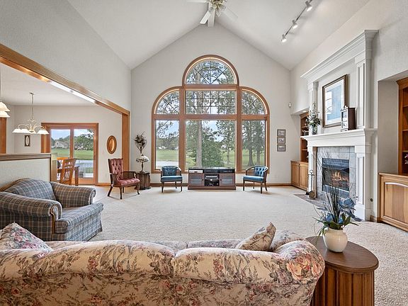 Welcome to 6608 Cherry Hill Pkwy. This over 5000 sqft home is located on one of the best lots in the desirable Cherry Hill addition! With a picturesque view trees, a pond, and Cherry Hills GC it's no wonder why. This house has a split bedroom floor plan with a main floor bedroom suite that has it's own private deck. The great room/living room is elegant with its cathedral ceiling, gas log fireplace surrounded by built in cabinetry. The natural woodwork of built-ins continues into a generous den/office space. Large windows throughout allow light to cascade into every room. There are 3 spacious bedrooms upstairs and an unfinished room that is perfectly set to be finished to the new owner's preference. Down in the basement, there are 2 large spaces for entertaining along with the 5th large bedroom and 3rd full bath. Relax outside in the backyard with open concrete patio and separate open deck. Cherry Hill adition amenities include community swimming pool and tennis court.