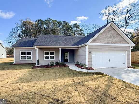 Welcome to the Millie Plan by Chisel Mill Homes-a charming 4-bedroom, 2-bath ranch nestled on a spacious 1.5-acre lot in Grantville, GA. From the moment you arrive, the inviting rocking chair front porch sets the tone for relaxed Southern living. Step inside to discover stylish, low-maintenance LVP flooring throughout the shared living spaces, including a bright, open-concept kitchen and living room designed for effortless entertaining. The kitchen boasts a large island and generous cabinet space-perfect for hosting gatherings or enjoying everyday meals. Outside, the expansive lot offers plenty of room to roam, unwind, or create your own backyard oasis. Blending comfort with country charm, this home delivers a peaceful retreat just minutes from local conveniences. Estimated completion: Mid October 2025. Photos shown are stock images from previous Millie Plan builds.