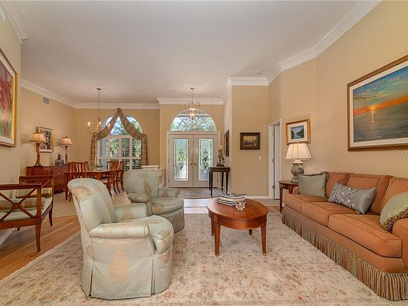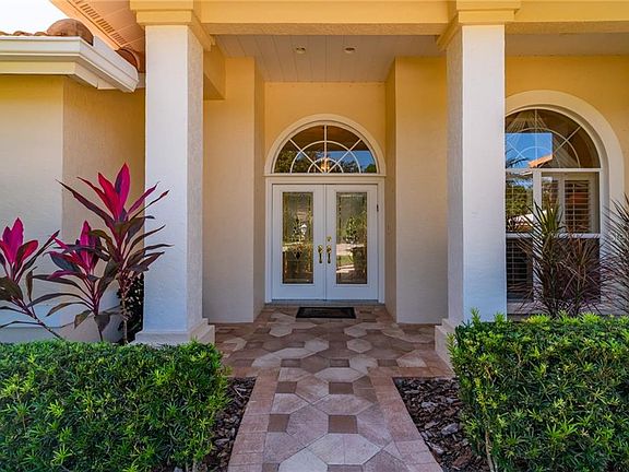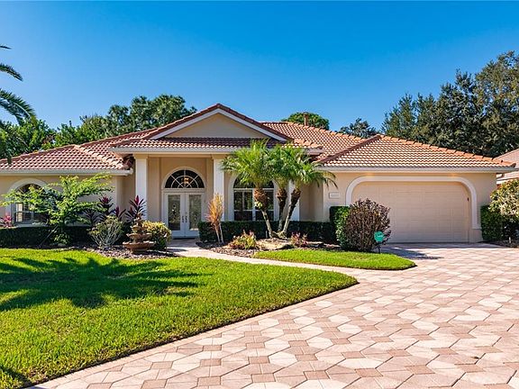 The Cream Rises to the Top! This amazing beautifully appointed home on a very quiet cul-de-sac called Hunter Combe in University Park Country Club may check all your boxes for your new residence. The present owners have added close to $150,000 in upgrades including roof, pavers, flooring, renovated kitchen & bath, whole house generator, and more. Hopefully your heart will sing as you approach this residence with winding pavered driveway surrounded by thoughtful landscaping complete with bubbling fountain. Double doored leaded glass entrance welcomes you to a home filled with surprises: hickory flooring, plantation shutters, designer modern light fixtures, double crown moldings and tiled main traffic areas. The spacious kitchen overlooking the pool area has granite countertops, white cabinetry, newer stainless steel appliance's (less than a year old), double oven, French door refrigerator complete with drawers, electric cooktop, double sinks, tasteful designer wallpaper and Dan Najjar's famous Pass Through Window from the kitchen out to the outdoor pool area. Off the kitchen is also a built-in desk & dry bar area with white cabinetry, glass shelving and a wine cooler. The large family room with hickory flooring, gas fireplace surrounded by Israeli limestone and built-in bookcases has disappearing sliders that open to the lanai. Two guest bedrooms (one bedroom is presently being used as a home office with customized built-ins) share a completely renovated bath. The master suite has hickory flooring, crown molding and opens onto the lanai. The master bath boasts a Roman style jacuzzi tub, cultured marble vanity with double sinks, built-in medicine cabinets, separate WC & walk-in Roman shower, and a custom walk-in master closet perfect for all your wardrobe needs. Laundry room provides LG washer and dryer plus soaking sink and extra cabinetry to support your laundry needs. The garage has room for two large vehicles, a golf cart, built-in suspended storage units plus cushioned rubberized flooring. Home has French drains around the perimeter and a newly purchased full house generator plus a central vacuum system etc. etc.! Now for the wonderful pavered lanai with heated saltwater pool has multiple areas for you to enjoy the Florida Lifestyle complete with pool bath. Owners have enjoyed planting many exotic plants outside the pool cage and extended their living area by creating an additional dining/relaxation oasis. Truly a Zen garden with extensive outside lighting to illuminate the pool area. This home is a must see and hopefully you will be a very fortunate new owner!! University Park is a gated community known for its preservation of the natural environment and features 27 holes of golf, 11 Har Tru tennis courts, fitness center, Park Grill, social-minded lifestyle and is ideally located so close to museum, downtown Sarasota, airport, UTC Mall, beaches and all the amazing social activities the area affords its residents. THIS IS TRULY A SWEET HOME!