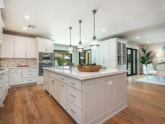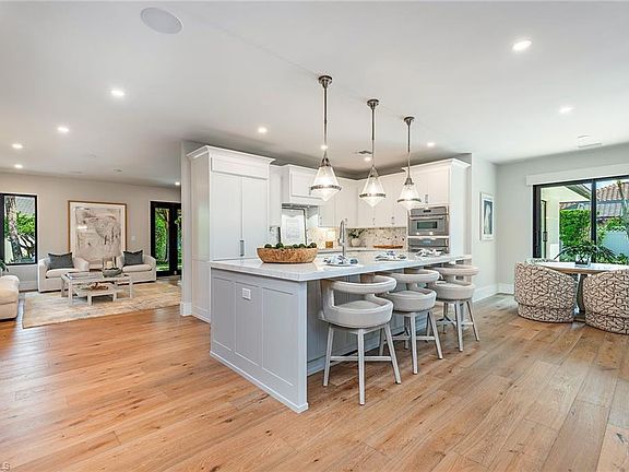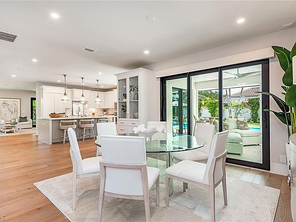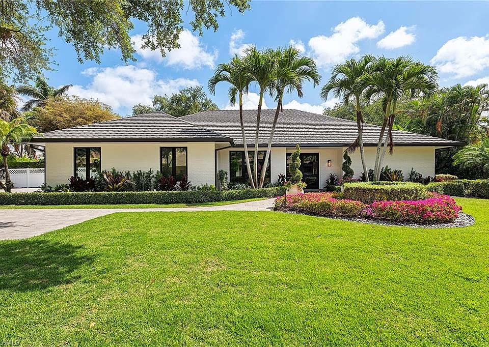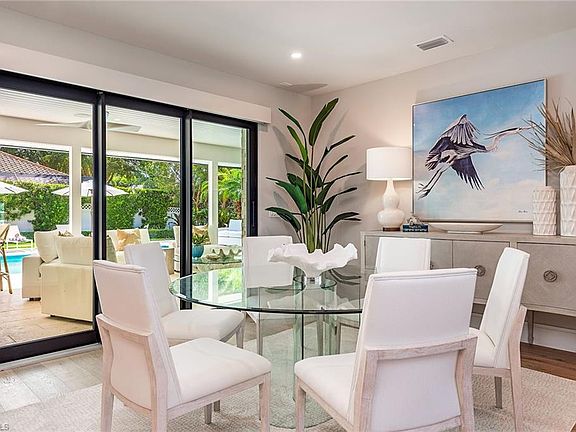 Tropical ambiance is abundant in this one-of-a-kind, completely renovated home in the heart of the prestigious beachfront community of Pelican Bay. Design selections curated by Collins DuPont effortlessly blend timeless Floridian charm with modern luxury. Step outside to your private oasis, where an expansive pool area, surrounded by lush landscaping, creates a backdrop for relaxation and entertaining - Complete with an outdoor kitchen and a spacious covered living area, inclusive of remote-controlled retractable screens. Light-filled and breezy, the home features all new high-impact glass, a chef's kitchen with Thermador appliances and a Sonos sound system throughout. The generously sized lot, private fenced yard and mature landscaping, along with secluded outdoor sitting areas, all enhance the feeling of privacy. Pelican Bay offers resort-style amenities with private access to three miles of white-sand beaches, sailing, kayaking, beachfront dining, a robust tennis program, a state-of-the-art fitness center, as well as recreational trails and parks across 88 acres of nature preserve.