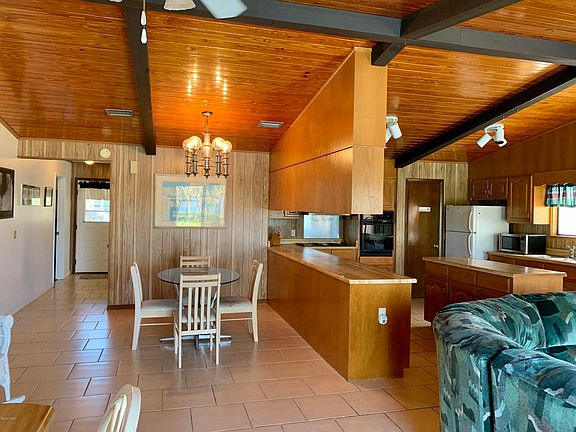 - Interior: Ceiling Beamed, Floor Tile, Breakfast Bar, Kitchen Island, Lockout-Closet