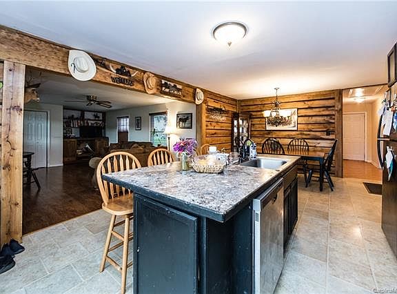 Adorable ranch/bungalow on 7 acres with 4 fenced pastures. Per tax records there are 3 bedrooms: 2 front BR have no closets, can be easily added. Owner installed rough wood paneling in main living areas for a truly hand-crafted rustic feel. Kitchen features a breakfast bar and farmhouse style kitchen sink, appliances remain. Master features walk in closet, stand-up shower, double door entry, wood flooring. Easy maintenance flooring throughout. Large rear deck with view of the entire property & barn. Laundry area leads to full bathroom. Exterior features 3 run-in shelters in individual paddocks, 30x61 block construction barn with 5+ stalls w/feeders, grooming bay, wired for washer/dryer, multiple areas for tack/feed/storage/activity/tool/lounge/hay/tractor. Reg sized 70'x200' dressage arena needs maint, chicken coop, excellent grass! Pecan trees, well loved property, needs TLC, selling AS-IS, mins from Cane Creek Park & Mineral Springs trails, excellent investment opp/horse/hobby farm!