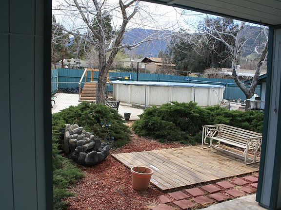 Tucked back away from it all, 2 parcels of land totaling 1.18 Acres. Zoned for large animals and plenty of room for them as well. If you have BIG toys? Plenty of room for this too! 2 - 2 car garages plus a sea train for storage, an above ground pool (completely fenced) for those warm summer days. The home itself is just beautiful. Open concept living, dining and kitchen with a covered front deck showing off the views. Roof is only 2 years old. Updated carpeting, freshly painted, sunken living area with a corner pellet stove and a beautiful brick hearth! 3 good sized bedrooms all with fantastic views. Some handicap features. There is a separate room that used to house a hot tub, tub is gone, so the space has unlimited potential. Property is completely fenced.