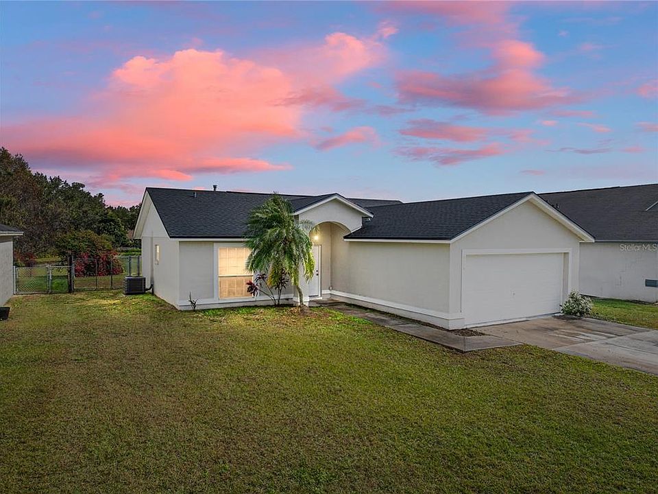 Welcome to this charming 3-bedroom, 2-bathroom home with a desirable split floor plan, offering both privacy and an inviting open layout. The spacious living areas provide ample room for relaxation and entertaining, while the screened-in lanai allows you to enjoy the outdoors year-round. The large backyard is fully fenced with chain-link and offers a peaceful water view for a serene and tranquil setting. Recent updates to the home include a new roof and AC in 2022, along with a 2019 water heater, ensuring the home is move-in ready with modern conveniences. Additionally, the 2-car garage provides plenty of storage and parking space. With its combination of comfort, convenience, and outdoor beauty, this home is perfect for anyone looking for a great place to call their own.