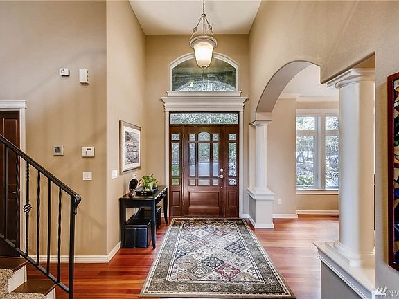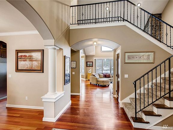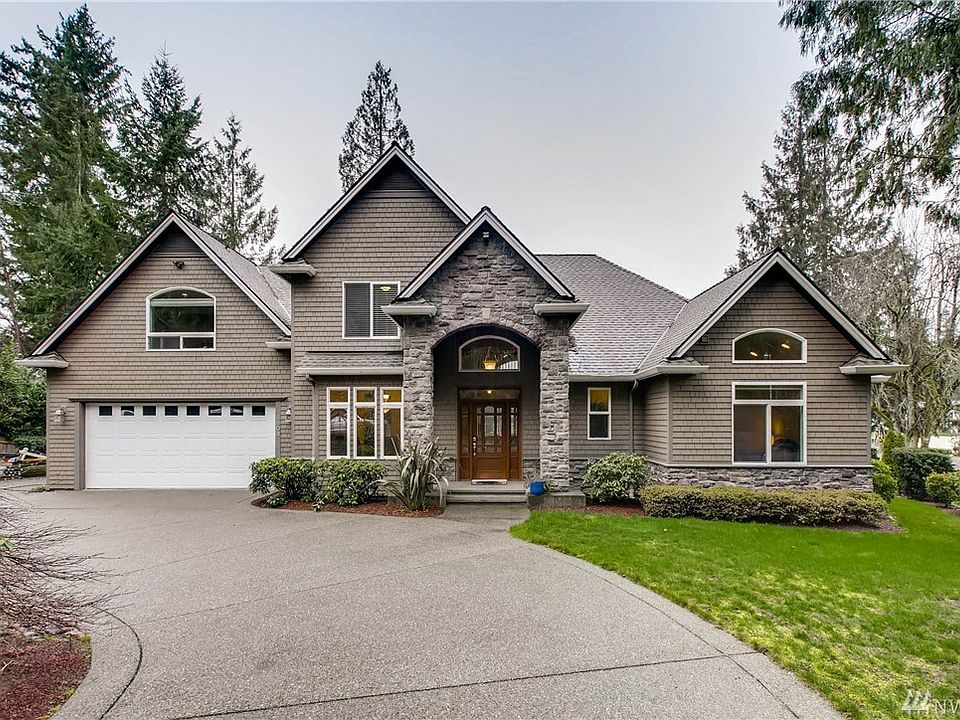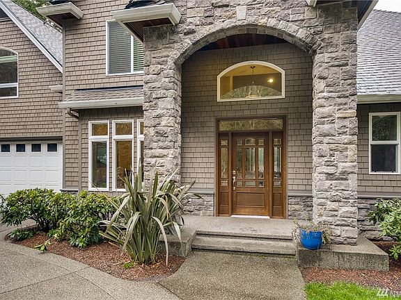 Premier Gated Lake Tapps Waterfront Home. 125' No Bank western exposure, seadoo lift, 2 docks. Gourmet kitchen w/imported slab granite & stainless appliances. Bonus/Media Room w/wet bar. Grand entry w/lavish millwork. Master on Main w/gas fireplace, luxurious bath & lake views. Circular drive w/gated entry. Landscaped w/irrigation & water feature. Beautiful dock w/trex deck, boat slip, and room for toys.
