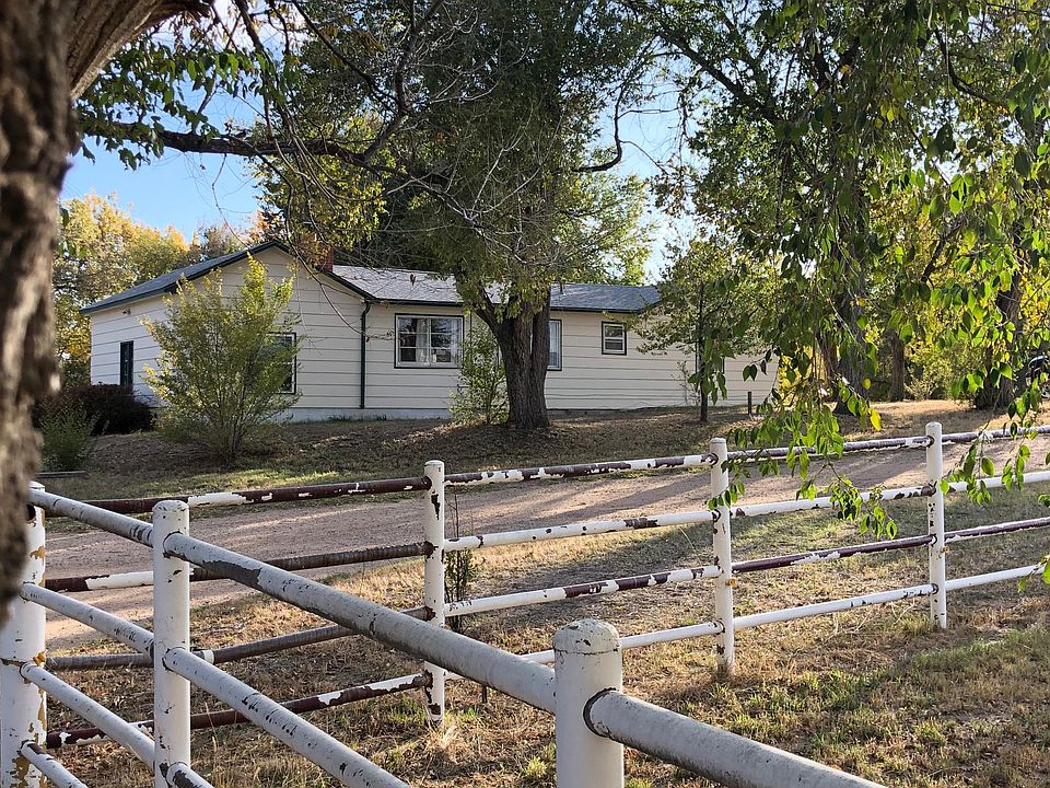 Looking for a quaint, quiet home? This home is located on a 5 acre gated property and provides a peaceful place away from the busy city life. 2-bedroom 1-bath with 1-car garage, unfinished basement, fireplace, large utility room with washer/dryer hookups. Outdoor amenities include Front Yard enclosed with planters to display your beautiful summer flowers, fire pit, and large fenced dog pen. Small fenced in chicken house. Large indoor arena. (92'x120' Steel building - addition containing 8 horse stalls ,tack room. wash stall.. Additional Barn containing 6 large horse stalls. Great mountain views and near many hiking trails. Small stream runs along the South border of property.