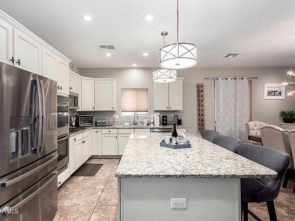This stunning property located in a highly desirable location is move in ready and can be the perfect lock and leave. Situated in a peaceful neighborhood, this charming home boasts a spacious floor plan and a multitude of upgrades. Primary suite is luxurious and very spacious with an upgraded closest. The gourmet kitchen and larger island is perfect for entertaining and opens to a great room. New cabinets installed in the garage with metallic copper flooring. Main HVAC new in 2021. New pool heater in 2023 and salt water system added in 2021 with a new pool pump. All furnishings are available on a separate bill of sale. Property is close to CCV, Glendale Community College, Lifetime Fitness, Nortera Shopping mecca, lots of great restaurants, & I-17.