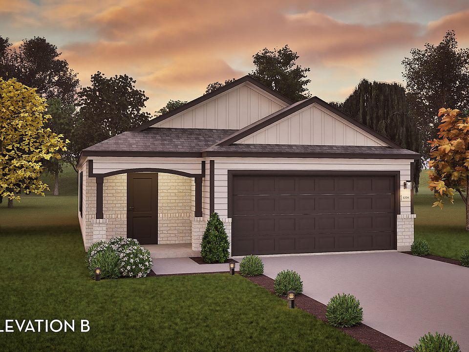 The Oak is a spectacular home boasting three bedrooms and two bathrooms, the perfect essential layout for most any lifestyle. Upon entering the stunning Oak plan, feast your eyes on the inviting formal dining room - perfect for hosting dinner parties or having your whole family come together for the holidays. Beside your formal dining room rests your convenient walk-in utility room with direct access to your spacious two-car garage. Toward the right wing of the home is your second and third bedrooms accompanied by the full secondary bathroom residing between the two bedrooms. Travel further throughout the home and you will find the flexible kitchen area that opens up to the family room, so you will never have to miss out on any moment with guests. Your kitchen comes equipped with sleek granite countertops paired with a ceramic tile backsplash, gorgeous flat-panel birch cabinets, industry-leading appliances, and stylish designer light fixtures. Conveniently attached to your family room is access to the backyard and the optional covered patio - perfect for relaxing outdoors and embracing the surrounding nature. Retreat to your private master suite, where you will discover cultured marble countertops, a super shower, and a walk-in closet. This well-designed plan is filled with energy-efficient features that keep you and your family's comfort at the forefront. Features like low E3 cube windows, third-party inspected insulation, and high-efficiency lighting all work together throughout your home to give you keep you and your family comfortable in your new home year-round. With the exclusive options and features that are available in the Oak plan, you will love experiencing life in this open-concept, essential floor plan. However you have always envisioned your dream home, guaranteed the Oak plan will give you everything you want and more while cherishing each and every moment inside of your new home for many years to come.