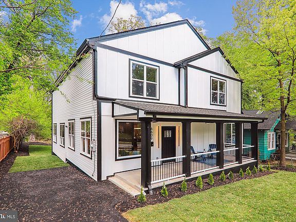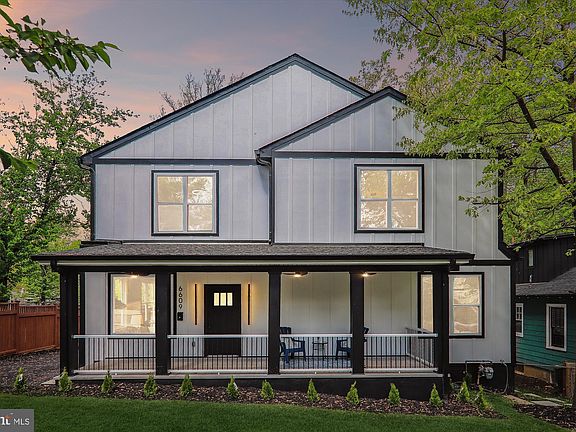 OPEN HOUSE - 4/28 FROM 2-5PM: Centrally located in Takoma Park, this stunning bespoke 6 bedroom, 5 bathroom, 4,300 sqft Colonial Farmhouse originally built in 1934 has been completely reimagined and expanded with a meticulous palette of charm, hospitality, and luxury. You are going to love the unique accent walls, majestic backyard, large primary suite with spa like bathroom, and generously sized bedrooms! The perfect house to entertain and retreat. Natural sunlight filled, artistic flare, and custom fixtures engulf you as you enter the expansive entertainer’s open floor plan with tall 10 foot ceilings. Moving throughout the main level past the living room to the family room filled with bespoke light fixtures and with a warm fireplace with access to the backyard. Toward the dining area and kitchen, see the stylish cabinetry line the walls of the kitchen, well complimented by the unique quartz countertops, stainless steel appliances, and center island with waterfall counters. Soak up the sunshine and warm spring air from the privacy of the deck, just off the kitchen and dining room, overlooking the majestic backyard where your family, friends, and pets can run free without worry. Retreat to the tranquility of the second-floor primary suite, a luxury spa like en suite with a stand-alone tub, rainfall shower and a walk-in closet with built-in shelving. Each bedroom features high ceilings, generously sized closets and private bathrooms. Additionally, the open basement allows for recreation and additional storage space with two additional bedrooms. Enjoy easy access to area amenities and local hot spots, including plenty of walking biking trails, parks, shopping within Old Town Takoma Park and Downtown Silver Spring, cafes, restaurants, and public transportation into the capital (Washington DC) on the Takoma Park Metro and Silver Spring Metro station's. Additional amenities include a private driveway, ample parking spaces, a recreation room in the finished basement, a covered front porch, and easy-to-maintain yet lovely landscaping.
