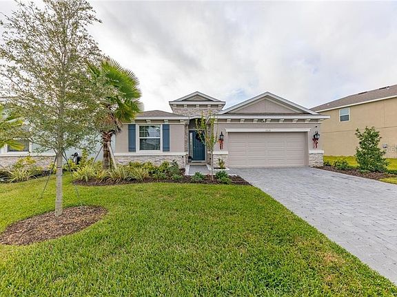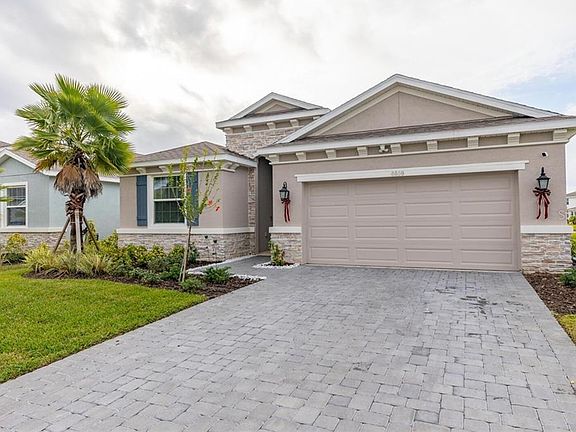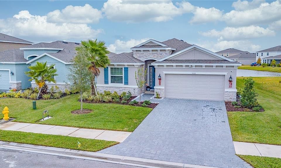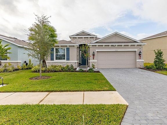 #JustAnotherDayInParadise in this LAKE VIEW WATERFRONT and Beautiful fountain. Located on one of the most private lots in Trevesta this DR HORTON home is MOVE-IN-READY. The Lantana floor plan offers 4 bedrooms, 2.5 bathrooms, a 2 car garage, and approx 2,057 heated square feet. The ceramic tile has been installed throughout the main living areas. The open concept living area includes a 14.5 foot island with shaker cabinets, granite, recessed lighting, and a closet pantry with stainless steel Frigidaire appliances. The master en-suite includes his and her walk-in closets, a double sink vanity, a soaking tub, a glass enclosed shower, and a private commode. The large sliding glass doors off the great room lead out to the Expanded screen enclosed lanai with hot tub overlooking the lake and fountain. Relax on your waterfront lanai with hot tub to enjoy the beautiful sunsets of sunny southwest Florida. The washer and dryer are situated in the laundry room located off the attached 2 car garage. This home comes equipped with Smart Home technology by Z- Wave including a thermostat and a Skybell video thermostat. Trevesta is conveniently located to I-75 making the commute to Tampa, St Petersburg, and Sarasota possible. This 4 acre community includes a clubhouse, fitness center, a resort sized pool, a splash pad, and a playground. Make your move today!