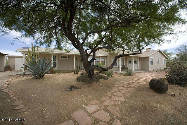 Charming Custom Home on Huge Parcel of land suitable for horses. Large open floor plan, Double Entry Doors, Vaulted Ceilings, Living Room open to Dining Room with Bay Window. Kitchen open to Family Room and Breakfast Room. Additional Features include Fireplace, Plantation Shutters, Large Covered Patio. Picturesque natural desert views seen from the large windows throughout the home. Floor plan designed with 2.5 baths, 3 bedrooms. Lots of storeage, all bedrooms with walkin closets. Natural Desert Landscape with Saguaro, Palo Verde, Mesquite,and Ironwood Trees. Owner/Agent